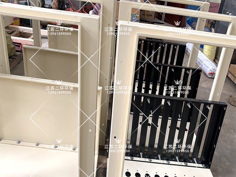 5、設(shè)備正面開(kāi)門,方便快捷插入布袋籠架,更換維護(hù)方便,占地面積小,通常安裝在室內(nèi)。