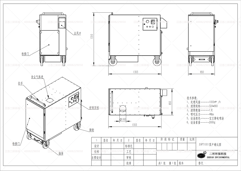 3、PT-1H型移動焊煙單機圖紙(下圖)注意:濾筒+活性炭=2級過濾喔!